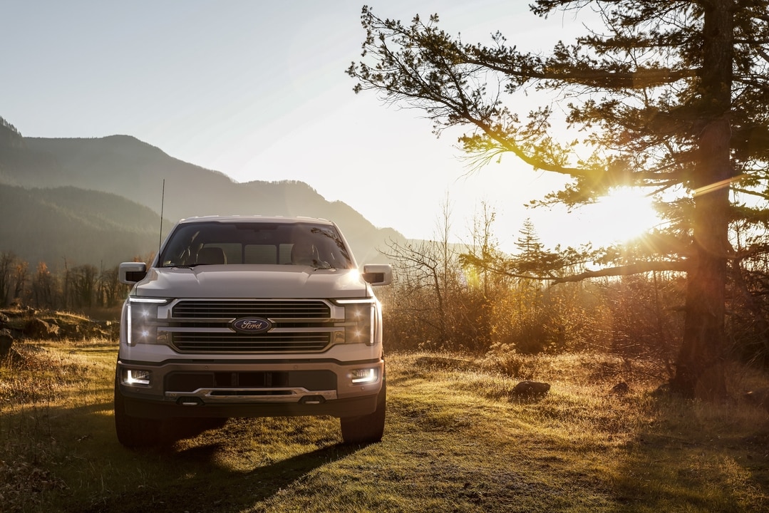 Interior appointments range from durable vinyl seating in work trucks to premium leather-trimmed seats with heating, ventilation, and power adjustment in higher trims. Available features include dual-zone automatic climate control, B&O® sound systems by Bang & Olufsen® with up to 14 speakers, and innovative work surfaces that transform the cabin into a mobile office.