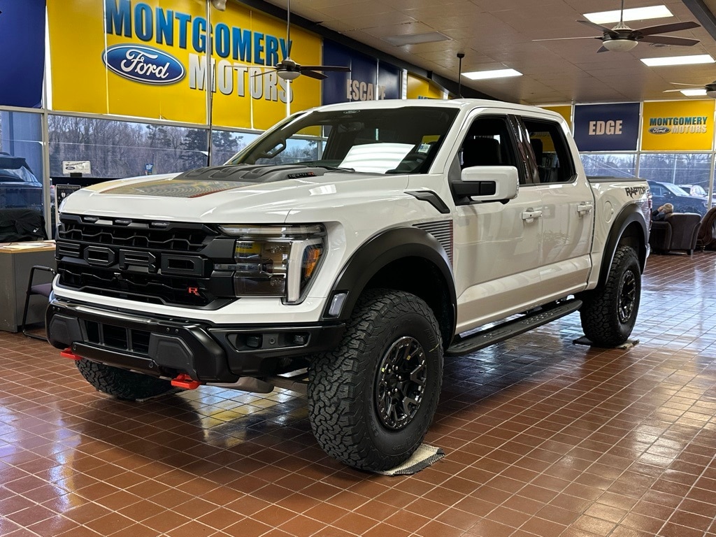 Equipment Group 803A Raptor R (Code Orange Front Tow Hooks, Code Orange Stitching Doors and Instrument Panel, Dual Valve Shocks, Electronic Locking with 4.10 Axle Ratio, Interior Code Orange Raptor R Badging, Modular Front Bumper, Radio: B&O Unleashed Sound System by Bang & Olufsen, Raptor R Badge Tailgate Applique, Raptor R Exterior Graphics, Raptor R Exterior Theme, Raptor R Interior Theme, Raptor R Unique Grille, Raptor R Unique Hood Vent with R Badge, RECARO with Code Orange Stitching Front Seats, Removes 2KW Pro Power Onboard, SYNC 4 with Enhanced Voice Recognition, Unique Carbon Fiber Appliques, Upgraded Dual Exhaust, and Wheels: Raptor R Unique 17" Forged Aluminum), Ford Connectivity Package (1-Year Included), Internet access capable: 5G Modem - Ford Connectivity Package, 14 Speakers, 17" Cast Aluminum Wheels, 4-Wheel Disc Brakes, ABS brakes, Adjustable pedals, Air Conditioning, Alloy wheels, AM/FM radio: SiriusXM with 360L, Auto High-beam Headlights, Auto tilt-away steering wheel, Auto-dimming door mirrors, Auto-dimming Rear-View mirror, Automatic temperature control, Brake assist, Bumpers: body-color, Compass, Delay-off headlights, Driver door bin, Driver vanity mirror, Driver's Side SecuriCode Keyless-Entry Keypad, Dual front impact airbags, Dual front side impact airbags, Electronic Stability Control, Emergency communication system: SYNC 4 911 Assist, Front anti-roll bar, Front Bucket Seats, Front Center Armrest, Front dual zone A/C, Front fog lights, Front reading lights, Front wheel independent suspension, Fully automatic headlights, Garage door transmitter, Heated door mirrors, Heated front seats, Heated rear seats, Heated steering wheel, Illuminated entry, Lane Departure Warning System, Leather steering wheel, Leather Trimmed Seats, Low tire pressure warning, Memory seat, Navigation system: Connected Navigation, Occupant sensing airbag, Outside temperature display, Overhead airbag, Overhead console, Panic alarm, Passenger door bin, Passenger vanity mirror, Pedal memory, Power door mirrors, Power driver seat, Power passenger seat, Power steering, Power windows, Radio data system, Rain sensing wipers, Rear reading lights, Rear step bumper, Rear window defroster, Remote keyless entry, Security system, Speed control, Speed-sensing steering, Split folding rear seat, Steering wheel memory, Steering wheel mounted audio controls, Tachometer, Telescoping steering wheel, Tilt steering wheel, Tough Bed Spray-in Bedliner, Traction control, Trip computer, Turn signal indicator mirrors, Twin Panel Moonroof, Variably intermittent wipers, and Ventilated front seats.