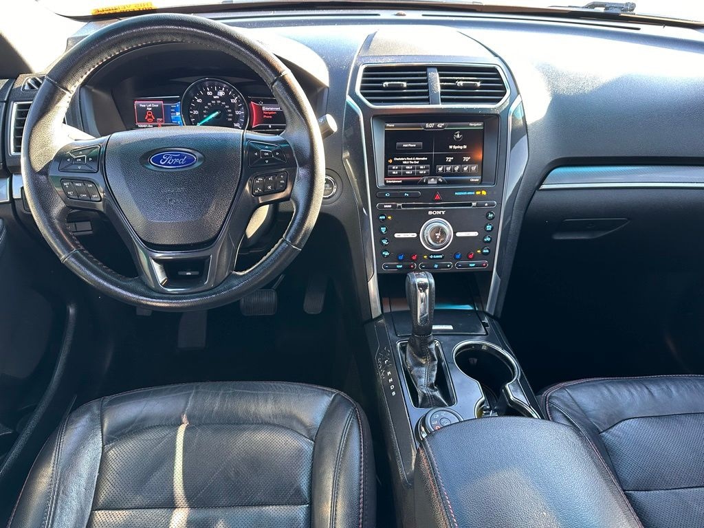 BLIS Plus Inflatable Rear Safety Belts Package (Auto-Dimming Driver's Sideview Mirror, BLIS Blind Spot Information System, and Inflatable Rear Seatbelts), Equipment Group 401A (Ambient Lighting, Dual 2nd Row Smart Charging USB, Front 180 Degree Camera w/Washer, Hands-Free Liftgate, Heated Steering Wheel, Memory Feature, Perf Leather-Trimmed Heated/Cooled Bucket Seats, Power Adjustable Pedals, Power Converter 110V Outlet, Power Folding Sideview Mirrors w/Autofold, Power Tilt/Telescoping Steering Wheel, Universal Garage Door Opener, and Voice-Activated Navigation System), 12 Speakers, 20" Machined Aluminum w/Painted Pockets Wheels, 2nd Row Bucket Seats, 3.16 Axle Ratio, 3rd row seats: split-bench, 4-Wheel Disc Brakes, ABS brakes, Air Conditioning, Alloy wheels, AM/FM radio: SiriusXM, Auto-dimming Rear-View mirror, Automatic temperature control, Brake assist, Bumpers: body-color, CD player, Compass, Delay-off headlights, Driver door bin, Driver vanity mirror, Dual front impact airbags, Dual front side impact airbags, Electronic Stability Control, Emergency communication system: 911 Assist, Exterior Parking Camera Rear, Four wheel independent suspension, Front anti-roll bar, Front Bucket Seats, Front Center Armrest, Front dual zone A/C, Front fog lights, Front reading lights, Fully automatic headlights, Heated door mirrors, Heated front seats, Illuminated entry, Knee airbag, Leather steering wheel, LED Fog Lamps, Low tire pressure warning, Occupant sensing airbag, Outside temperature display, Overhead airbag, Overhead console, Panic alarm, Passenger door bin, Passenger vanity mirror, Perforated Leather-Trimmed Heated Bucket Seats, Power door mirrors, Power driver seat, Power passenger seat, Power steering, Power windows, Premium audio system: Sony, Radio data system, Radio: Sony Audio System w/Single-CD/MP3-Capable, Rear air conditioning, Rear anti-roll bar, Rear reading lights, Rear seat center armrest, Rear window defroster, Rear window wiper, Remote keyless entry, Roof rack: rails only, Security system, Speed control, Speed-sensing steering, Speed-Sensitive Wipers, Split folding rear seat, Spoiler, Steering wheel mounted audio controls, SYNC w/MyFord Touch, Tachometer, Telescoping steering wheel, Tilt steering wheel, Traction control, Trip computer, Turn signal indicator mirrors, Twin Panel Moonroof, and Variably intermittent wipers.