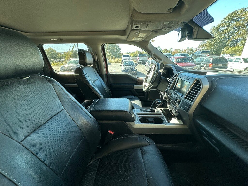 Equipment Group 502A Luxury (110V/400W Outlet, 2nd Row Heated Seats, Auto High Beam w/Rain-Sensing Windshield Wipers, BLIS Blind Spot Information System, Heated Steering Wheel, Leather-Trimmed Bucket Seats, LED Side-Mirror Spotlights, Power Tilt/Telescoping Steering Column w/Memory, Quad Beam LED Headlamps & Taillamps, Radio: Sony Single CD w/HD & SiriusXM Satellite, Remote Start System w/Remote Tailgate Release, Reverse Sensing System, Universal Garage Door Opener, and Voice-Activated Navigation), FX4 Off-Road Package, Lariat Chrome Appearance Package (Chrome 3-Bar Style Grille w/Chrome Surround, Chrome Angular Step Bars, Chrome Door & Tailgate Handles w/Body-Color Bezel, Chrome Skull Caps on Exterior Mirrors, Single-Tip Chrome Exhaust, and Wheels: 18" Chrome-Like PVD), Trailer Tow Package (Auxiliary Transmission Oil Cooler, Class IV Trailer Hitch Receiver, Pro Trailer Backup Assist, and Upgraded Front Stabilizer Bar), 18" Machined-Aluminum Wheels, 4-Wheel Disc Brakes, 7 Speakers, ABS brakes, Adjustable pedals, Air Conditioning, Alloy wheels, AM/FM radio: SiriusXM, Auto-dimming door mirrors, Auto-dimming Rear-View mirror, Automatic temperature control, Brake assist, Bumpers: chrome, CD player, Compass, Delay-off headlights, Driver door bin, Driver vanity mirror, Dual front impact airbags, Dual front side impact airbags, Electronic Stability Control, Extended Range 36 Gallon Fuel Tank, Exterior Parking Camera Rear, Front anti-roll bar, Front Center Armrest w/Storage, Front dual zone A/C, Front fog lights, Front License Plate Bracket, Front reading lights, Front wheel independent suspension, Fully automatic headlights, Heated door mirrors, Heated front seats, Illuminated entry, Integrated Trailer Brake Controller, Leather-Trimmed 40/20/40 Front Seat, Low tire pressure warning, Memory seat, Occupant sensing airbag, Outside temperature display, Overhead airbag, Overhead console, Panic alarm, Passenger door bin, Passenger vanity mirror, Pedal memory, Power door mirrors, Power driver seat, Power Glass Sideview Mirr w/Body-Color Skull Caps, Power passenger seat, Power steering, Power windows, Radio data system, Radio: Single-CD w/SiriusXM Satellite, Rear reading lights, Rear seat center armrest, Rear step bumper, Rear window defroster, Remote keyless entry, Security system, Speed control, Speed-sensing steering, Split folding rear seat, Steering wheel mounted audio controls, SYNC 3, Tachometer, Tailgate Step w/Tailgate Lift Assist, Telescoping steering wheel, Tilt steering wheel, Traction control, Trip computer, Turn signal indicator mirrors, Twin Panel Moonroof, Variably intermittent wipers, Ventilated front seats, Voltmeter, and Wheels: 20" Chrome-Like PVD.