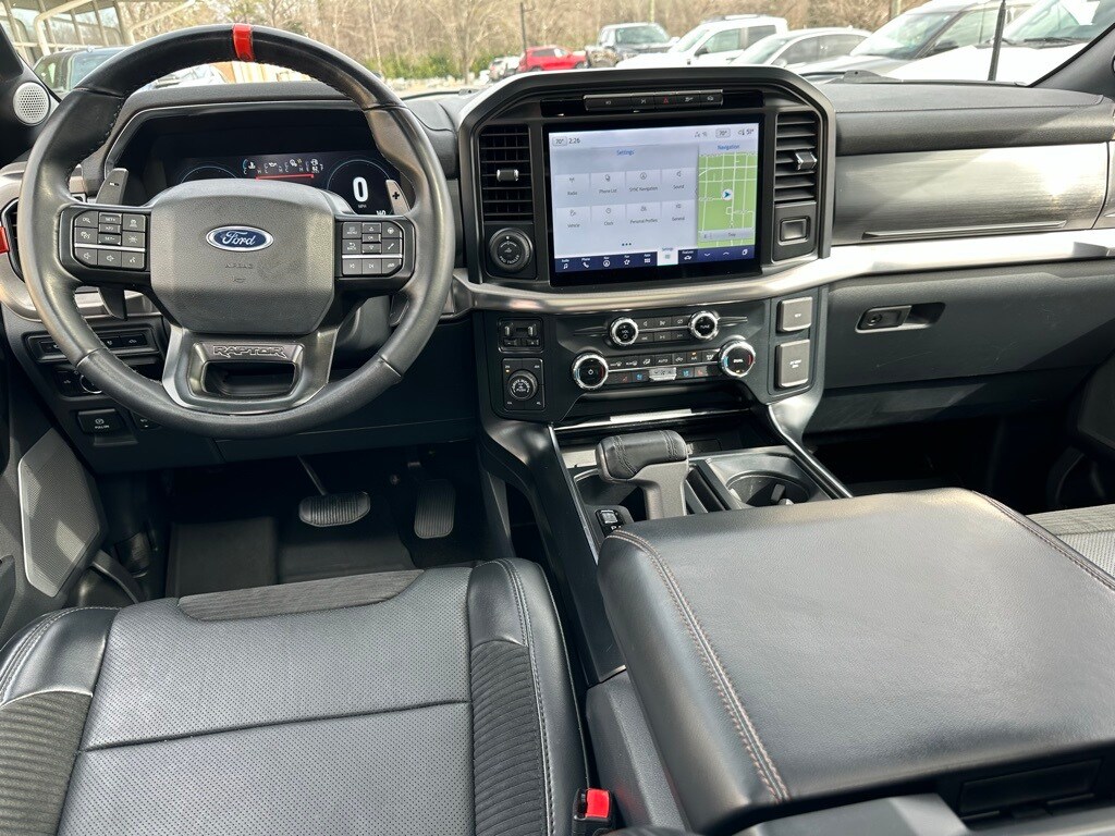 Equipment Group 801A Standard, GVWR: 7,300 lbs Payload Package, Moonroof & Tailgate (Power Tailgate and Twin Panel Moonroof), Raptor Exterior Graphics Package, 17" Cast Aluminum Wheels, 18 Speakers, 4-Wheel Disc Brakes, ABS brakes, Adaptive suspension, Adjustable pedals, Air Conditioning, Alloy wheels, AM/FM radio: SiriusXM with 360L, Auto High-beam Headlights, Auto Start-Stop Removal (DISC), Auto tilt-away steering wheel, Auto-dimming door mirrors, Auto-dimming Rear-View mirror, Automatic temperature control, Brake assist, Bumpers: body-color, Compass, Delay-off headlights, Driver door bin, Driver vanity mirror, Dual front impact airbags, Dual front side impact airbags, Electronic Locking w/4.10 Axle Ratio, Electronic Stability Control, Emergency communication system, Exterior Parking Camera Rear, Front anti-roll bar, Front Bucket Seats, Front Center Armrest, Front dual zone A/C, Front fog lights, Front reading lights, Front wheel independent suspension, Fully automatic headlights, Garage door transmitter, Heated door mirrors, Heated front seats, Heated rear seats, Heated steering wheel, Illuminated entry, Inclination/Intrusion Sensor Removal, Lane Departure Warning System, Leather Trim Seats w/Heated 2nd Row, Low tire pressure warning, Memory seat, Navigation system: Connected Navigation, Occupant sensing airbag, Outside temperature display, Overhead airbag, Overhead console, Panic alarm, Partitioned Lockable Fold-Flat Storage, Passenger door bin, Passenger vanity mirror, Pedal memory, Power door mirrors, Power driver seat, Power passenger seat, Power steering, Power windows, Pro Power Onboard - 2KW, Radio data system, Radio: B&O Unleashed Sound System by Bang & Olufsen, Rain sensing wipers, Rear reading lights, Rear step bumper, Rear window defroster, Remote keyless entry, Security system, Speed control, Speed-sensing steering, Split folding rear seat, Steering Wheel Heat Removal (DISC), Steering wheel memory, Steering wheel mounted audio controls, SYNC 4 w/Enhanced Voice Recognition, Tachometer, Telescoping steering wheel, Tilt steering wheel, Tough Bed Spray-In Bedliner, Traction control, Trip computer, Turn signal indicator mirrors, Variably intermittent wipers, and Ventilated front seats.