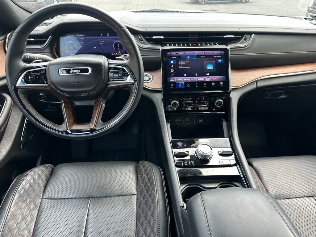 MOPAR Finishing Package (MOPAR Front Splash Guards, MOPAR Paint Protection Film, and MOPAR Rear Splash Guards w/Jeep Logo), Quick Order Package 23S, 10 Speakers, 19 Speakers High Performance Audio, 3.45 Rear Axle Ratio, 4-Wheel Disc Brakes, 950 Watt Amplifier, ABS brakes, Active Noise Control System, Adaptive suspension, Air Conditioning, Alloy wheels, AM/FM radio: SiriusXM with 360L, Anti-whiplash front head restraints, Audio memory, Auto High-beam Headlights, Auto-dimming door mirrors, Auto-dimming Rear-View mirror, Auto-leveling suspension, Automatic temperature control, Auxiliary Battery, Brake assist, Bumpers: body-color, Compass, Delay-off headlights, Driver door bin, Driver vanity mirror, Dual front impact airbags, Dual front side impact airbags, Electronic Stability Control, Emergency communication system, Four wheel independent suspension, Front anti-roll bar, Front Bucket Seats, Front Center Armrest w/Storage, Front dual zone A/C, Front fog lights, Front reading lights, Fully automatic headlights, Garage door transmitter, Genuine wood dashboard insert, Genuine wood door panel insert, Heated door mirrors, Heated front seats, Heated rear seats, Heated steering wheel, Illuminated entry, Knee airbag, Leather steering wheel, Low tire pressure warning, Memory seat, Nappa Leather Seats, Navigation System, Normal Duty Suspension, Occupant sensing airbag, Outside temperature display, Overhead airbag, Overhead console, Panic alarm, Passenger door bin, Passenger vanity mirror, Power door mirrors, Power driver seat, Power Liftgate, Power moonroof, Power passenger seat, Power steering, Power windows, Radio data system, Radio: Uconnect 5 Nav w/10.1" Display, Rain sensing wipers, Rear air conditioning, Rear anti-roll bar, Rear dual zone A/C, Rear reading lights, Rear seat center armrest, Rear window defroster, Rear window wiper, Remote keyless entry, Security system, Speed control, Speed-Sensitive Wipers, Split folding rear seat, Spoiler, Steering wheel memory, Steering wheel mounted audio controls, Tachometer, Telescoping steering wheel, Tilt steering wheel, Traction control, Trip computer, Turn signal indicator mirrors, Variably intermittent wipers, Ventilated front seats, Voltmeter, and Wheels: 20" x 8.5" Fully Painted Aluminum Silver.
